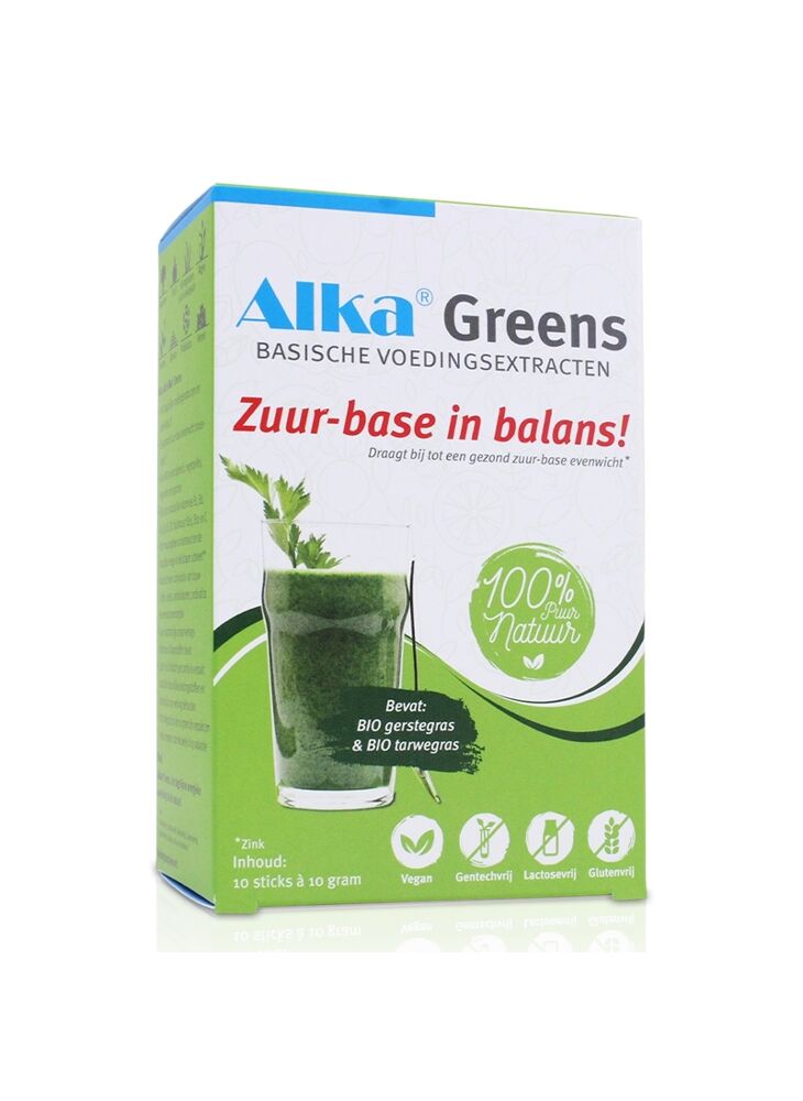 Deze basische voedingsextracten leveren je je dagelijkse aanvulling van de belangrijkste voedingsstoffen. Alka® Greens is een complete samenstelling van natuurlijke ingrediënten, ontwikkeld om het immuunsysteem te ondersteunen en de energie van je lichaam te activeren. De sticks zijn handig per portie verpakt en volledig vegan, gluten- en lactosevrij.