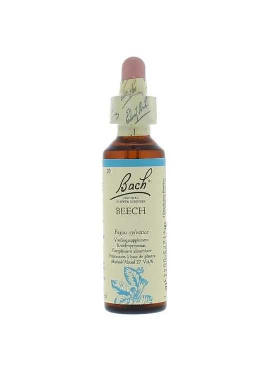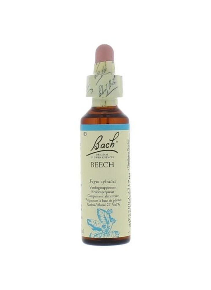 Ben je vaak te streng en kritisch, zowel voor jezelf als voor anderen? Merk je dat je daardoor soms wat intolerant, cynisch of zelfs een tikkeltje arrogant kan overkomen? Dan is Beech er om je te ondersteunen! Deze Bach bloesem kan je helpen verdraagzamer te worden en meer tolerantie en begrip te tonen voor het anders zijn van anderen. Bach bloesem Beech is een kruidentinctuur dat hoort bij de emotiegroep 'Leven en laten leven'.