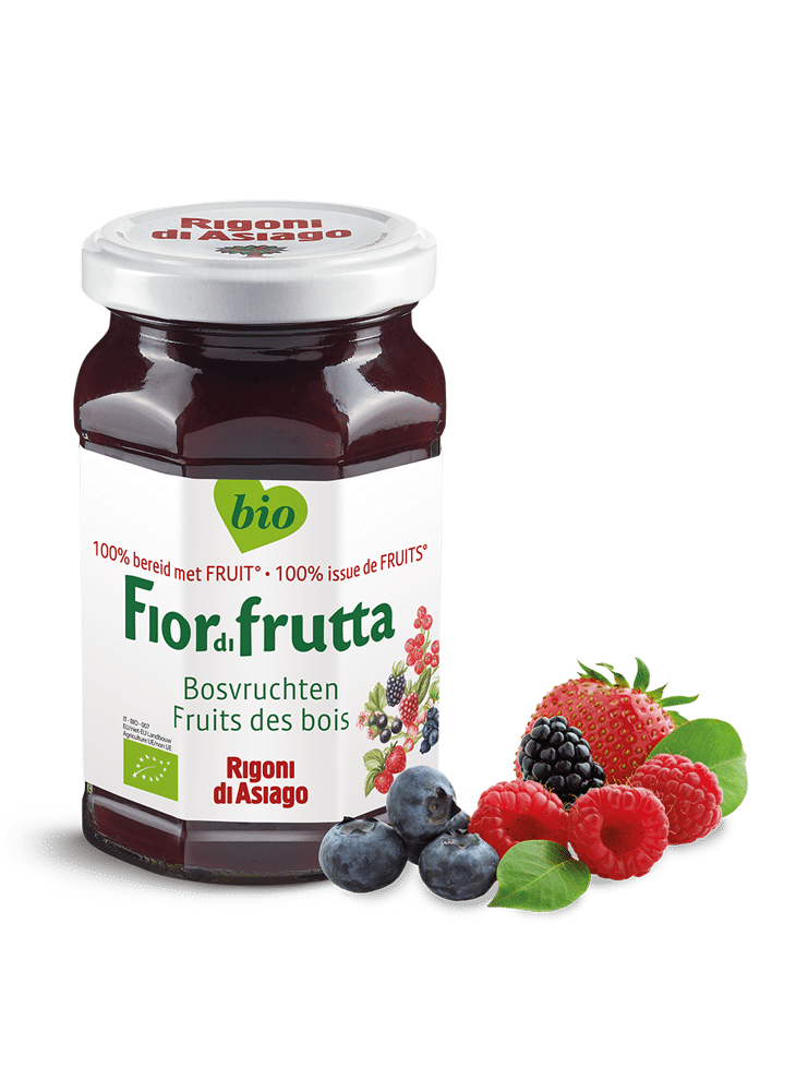 Een confituur die zijn vruchten afwerpt! Een hele hoop vruchten zelfs: blauwe bosbessen, cranberry’s, bramen, frambozen, rode aalbessen, zwarte bessen, rozenbottel en aardbeien. Deze wilde vruchten worden voornamelijk geoogst op de ongerepte velden van Rigoni di Asiago in Bulgarije. Een heerlijke mix rijk aan weldadige eigenschappen, een concentraat van heerlijkheid en echtheid. De smaak? Een echte cocktail van smaken die van zuur naar zoet gaan.