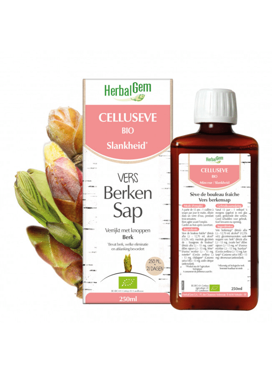 Heb jij wat problemen met gewicht verliezen en wil je je lichaam op natuurlijke wijze zuiveren? Het berkensap wordt sedert eeuwen gebruikt als ontgifter van diverse overbelastingen van het organisme. CELLUSEVE bevat vers berkensap met knoppenextracten van berk, zwarte bes en es om de eliminatie en het afslanken te bevorderen. De knoppen van kastanjeboom helpen de circulatie te ondersteunen en de benen te verlichten.