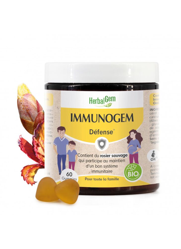 Dalende immuniteit? Verdediging verzwakt? Onze IMMUNOGEM-gummies helpen je om je natuurlijke afweer te versterken, dankzij de synergetische associatie van jonge wilde rozenscheuten, jonge zilverspar-scheuten en zwarte bessenknoppen, om de winter met volledige gemoedsrust tegemoet te gaan.