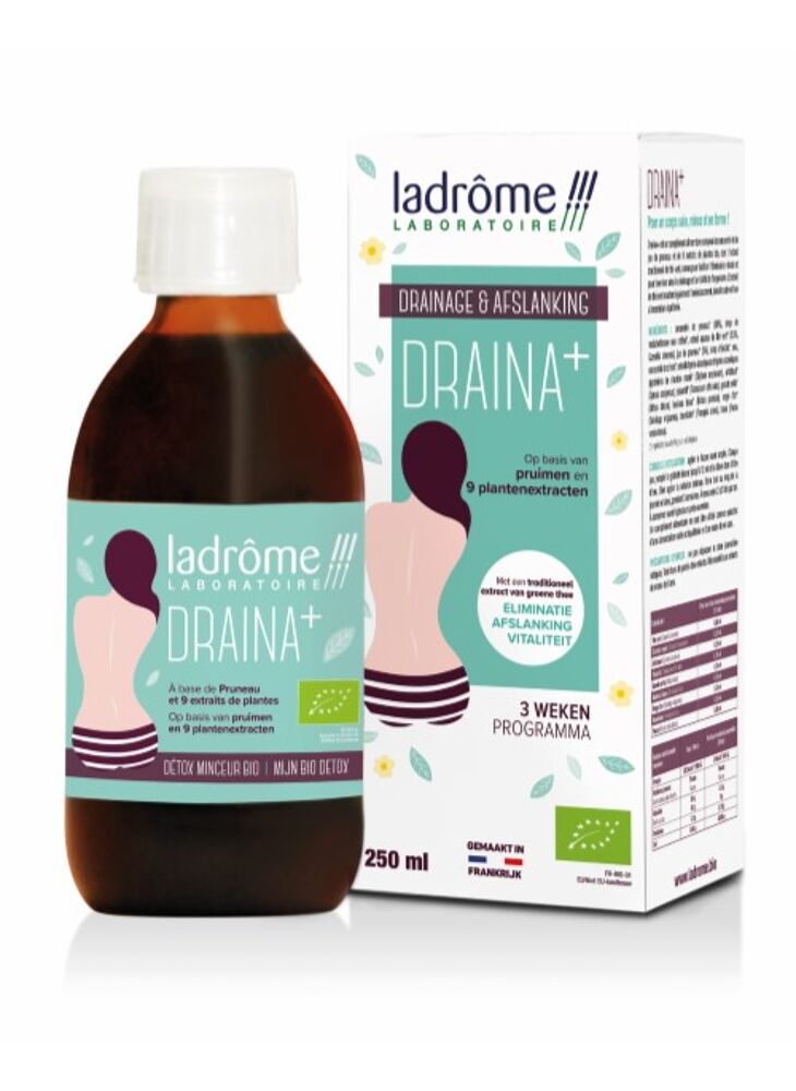 Zuiver je lichaam en geest met Draina+ van Ladrôme! Draina+ is een voedingssupplement dat bestaat uit pruimenconcentraat en -sap, in combinatie met 9 BIO plantenextracten, waaronder een traditioneel extract van groene thee. Die laatste wordt traditioneel ingezet om de eliminatie via de nieren te bevorderen en zo bij te dragen tot de zuivering en de vitaliteit van het organisme. Groene thee helpt ook af te slanken, als onderdeel van een evenwichtige voeding.