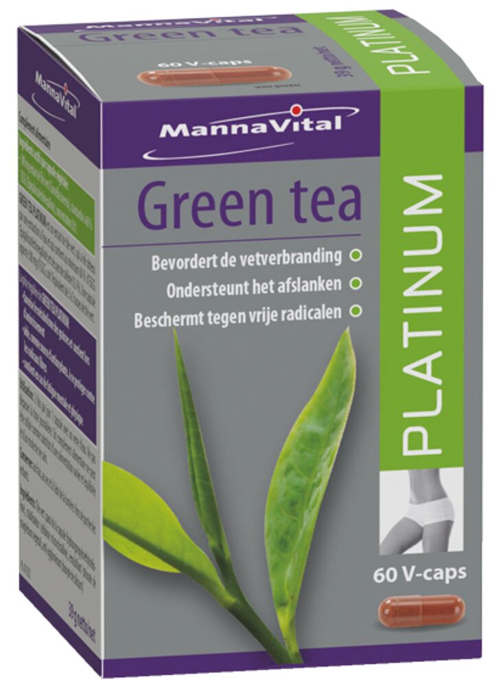 Hoor jij ook aldoor over de gezondheidsbevorderende effecten van groene thee, maar kan je zelf maar niet aan de smaak wennen? Of zweer je persoonlijk cafeïne helemaal af? Dan is GREEN TEA PLATINUM van Mannavital het ideale voedingssupplement voor jou! Het bijzondere antioxidans in groene thee, epigallocatechinegallaat of EGCG, is vele malen sterker dan de antioxidanten die we aantreffen in groenten en fruit. Regelmatig groene thee gebruiken is dan ook ideaal om de weefsels maximaal te beschermen tegen vrije radicalen, meer bepaald ter hoogte van de huid, bloedvaten en botten en om helder van geest te blijven. Ook de vetverbranding ondervindt positieve effecten door het gebruik van groene thee en de bloedglucosespiegel wordt beter onder controle gehouden. Dit natuurlijke middel, gemaakt van biologisch geteelde groene thee, kan door inname van één capsule al evenaren aan het drinken van 3-5 tassen thee, maar dit met een kleinere hoeveelheid cafeïne! Groene thee, maar dan nog groener en nog gezonder!