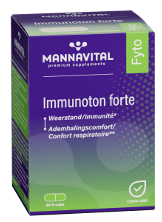Heb jij tijdens de winter last van acute aanvallen van je luchtwegen? Dan is het belangrijk om je zo goed mogelijk te beschermen tegen deze vreemde indringers! IMMUNOTON FORTE bevat de combinatie van twee kruiden die bijdragen tot een sterke afweer en meer ademhalingscomfort: de Indiase echinacea (KalmCold®) en de Zuid-Afrikaanse Umckaloabo en dit in hun correcte, wetenschappelijk onderzochte hoeveelheden. Daarnaast zitten in IMMUNOTON FORTE de voor de weerstand meest essentiële mineralen en vitaminen in hun actiefste vorm en een correcte dosis.