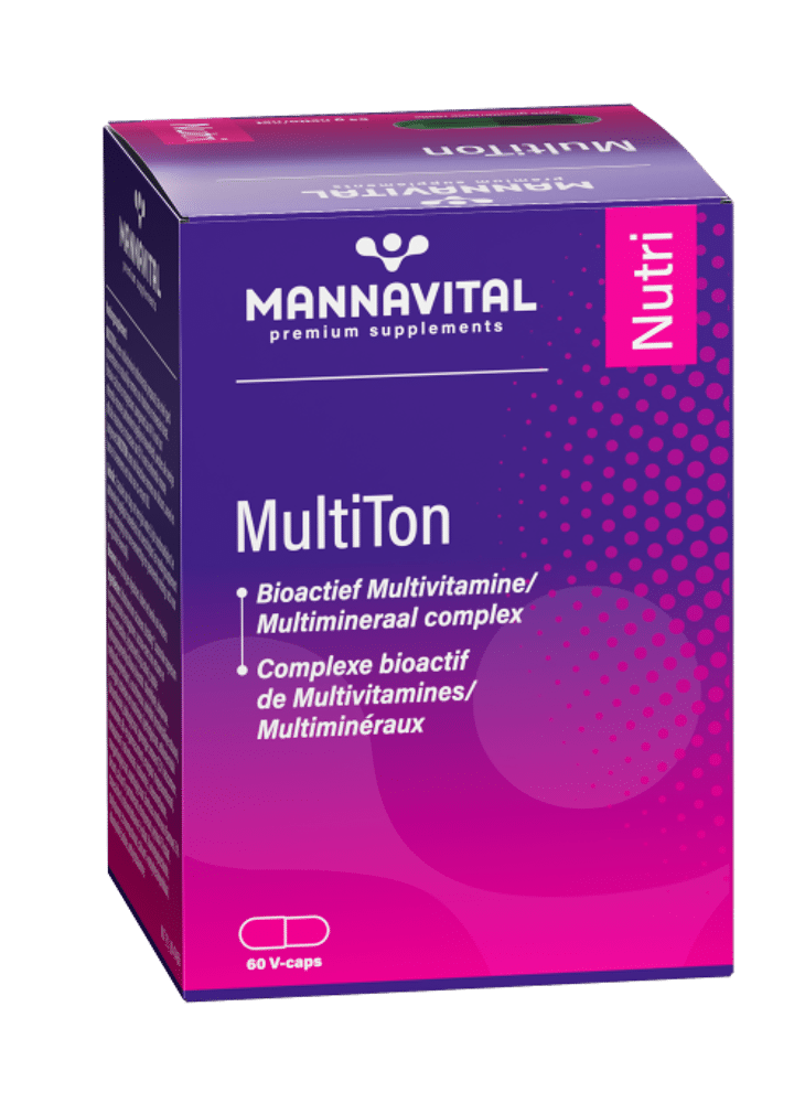 In deze tijden van bodemverarming, sterke vervuiling, verhoogde werkdruk en dagelijkse stress, is een aanvulling op de voeding heel vaak nuttig. Maar waar moet je in hemelsnaam beginnen om een gezond en volledig supplement te vinden? Helaas bieden de meeste multivitamine-multimineraalpreparaten onvoldoende steun, omdat ze synthetische vitaminen en anorganische, slecht opneembare mineralen bevatten. Helemaal anders is het met MULTITON van Mannavital: dit zeer breed ondersteunend multipreparaat voldoet aan de hoogste kwaliteitseisen en levert enkel de correcte en bioactieve nutriënten aan.