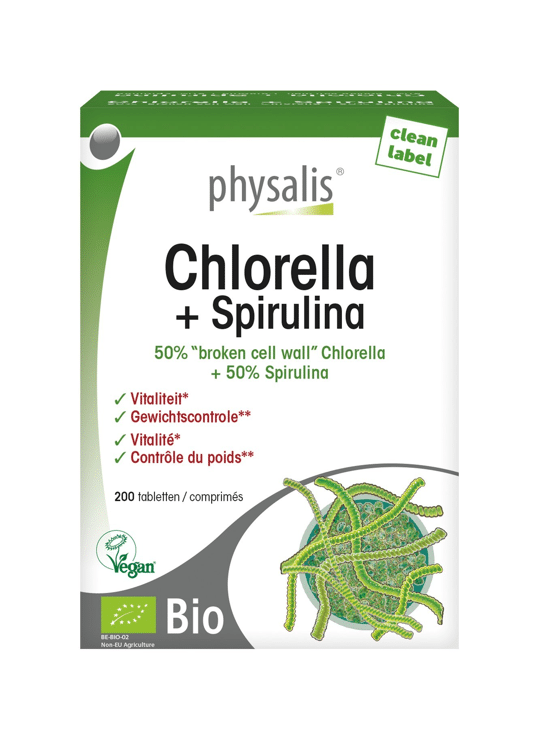 Algen worden al meer dan duizend jaar gekweekt en gebruikt als voedselbron. Dat dat volkomen terecht is, zal je ook merken aan Physalis Chlorella + Spirulina bio! Chlorella en spirulina, respectievelijk een felgroene zoetwater- en een zoutwateralg, dragen bij tot de vitaliteit en de natuurlijke afweer. Chlorella, of letterlijk ‘klein groen blaadje’, ondersteunt de leverwerking en de inwendige reiniging, terwijl spirulina helpt bij de gewichtscontrole. Ervaar zelf de wonderlijke werking van deze natuurlijke superalgen!