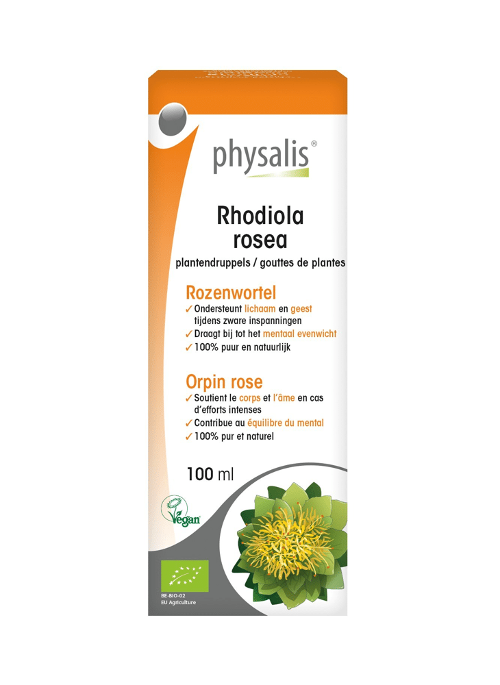 Onze geest is de wortel van ons functioneren. Physalis Rhodiola rosea bio plantendruppels ondersteunen daarom niet alleen je fysieke prestaties, maar dragen daarnaast ook bij tot je mentaal evenwicht! De actieve bestanddelen van de rozenwortel, waarvoor deze plant al eeuwen wordt gebruikt, bieden ondersteuning voor zowel lichaam als geest tijdens zenuwachtige toestanden of bij zware fysieke inspanningen.