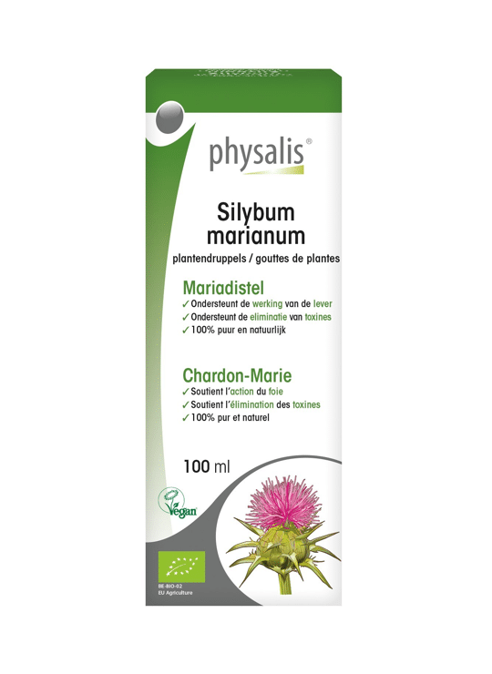 Verbeter je lever, verbeter je leven! Physalis Silybum marianum bio plantendruppels dragen bij tot bescherming van de lever en zijn aangewezen bij een zuiveringskuur. De mariadistel staat al eeuwenlang bekend om zijn medicinale eigenschappen en ondersteunt de werking van de lever en gaat vetopstapeling tegen.