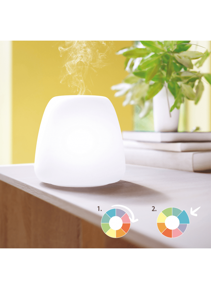 Afhankelijk van de gewenste sfeer in je ruimtes kies je de kleur die het beste bij jou past: zacht voor een discreter effect of helderder voor een meer kleurrijke noot. Dankzij de aromatische nevel die de verstuiver verspreidt, personaliseer je de geurige sfeer van je leefruimten. Je zuivert de lucht en creëert bovendien een ontspannende zen-omgeving of een meer opwekkende sfeer!
