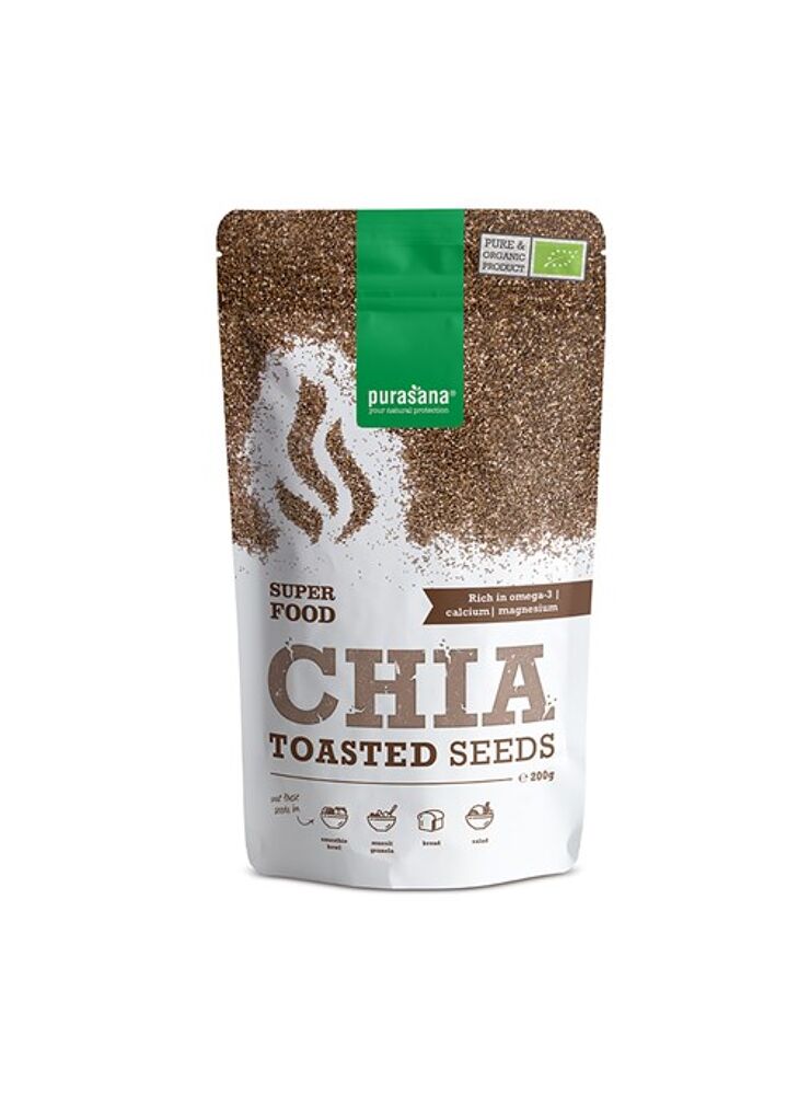 De crunchy en toasted chiazaden van Purasana onderscheiden zich van de gewone chiazaden door hun extra krokante karakter en hun unieke lichtgerookte smaak.