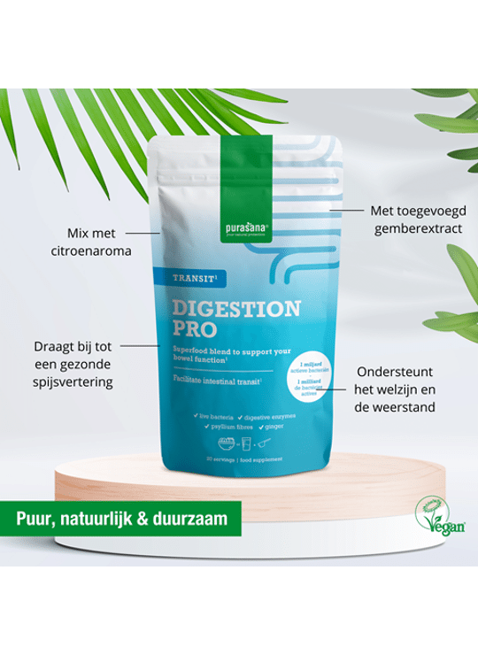 Wat ook kan helpen is meer goede bacteriën, enzymen en vezels aan je voedingspatroon toe te voegen. Digestion Pro Transit levert deze ingrediënten in een unieke superfood mix.