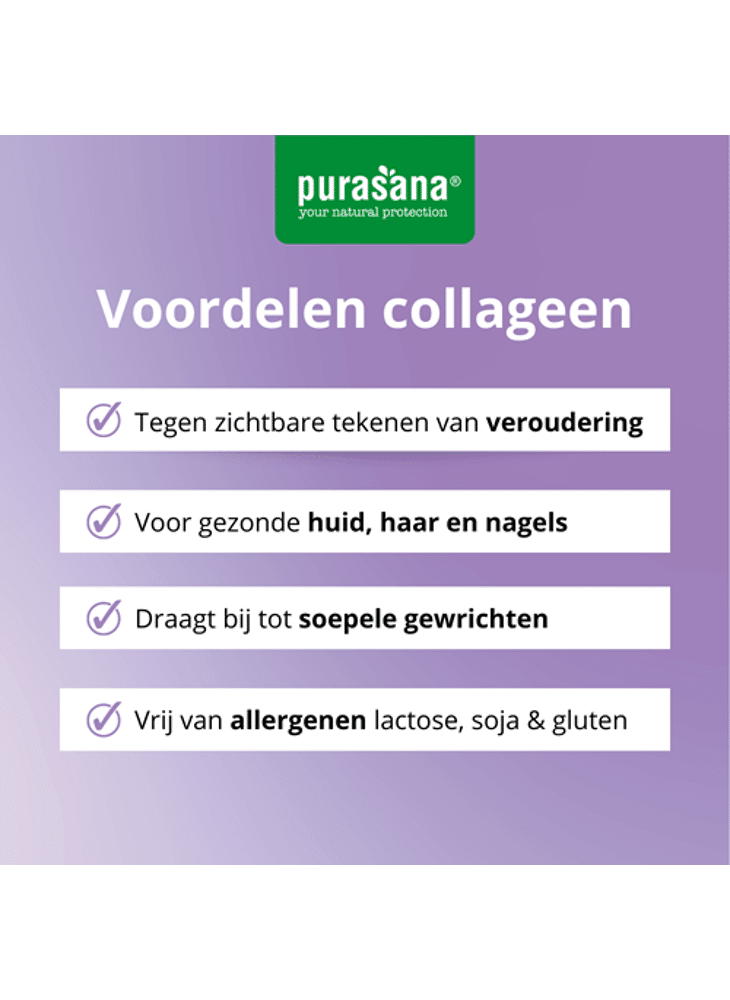 Goed om weten: Purasana's collageenpoeder bevat peptiden met een moleculair gewicht van 4000 dalton. Dat wil zeggen dat de peptiden vrij klein zijn en daarom goed opneembaar door het lichaam..