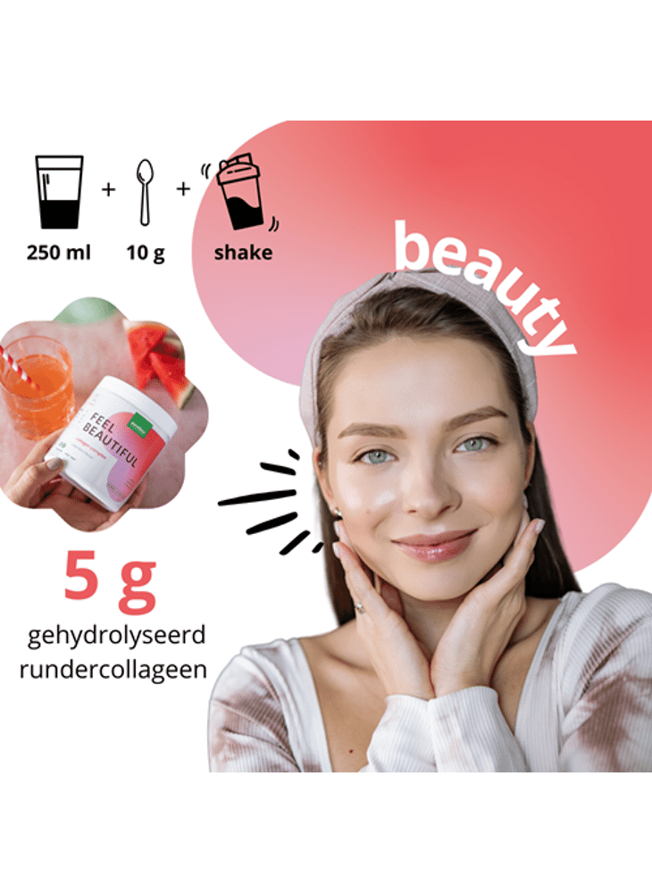 Gebruik een portie van 10 g per dag voor een optimaal resultaat. Meng het collageenpoeder door water, shakes, smoothies en yoghurt. Met de zoete smaak van watermeloen!