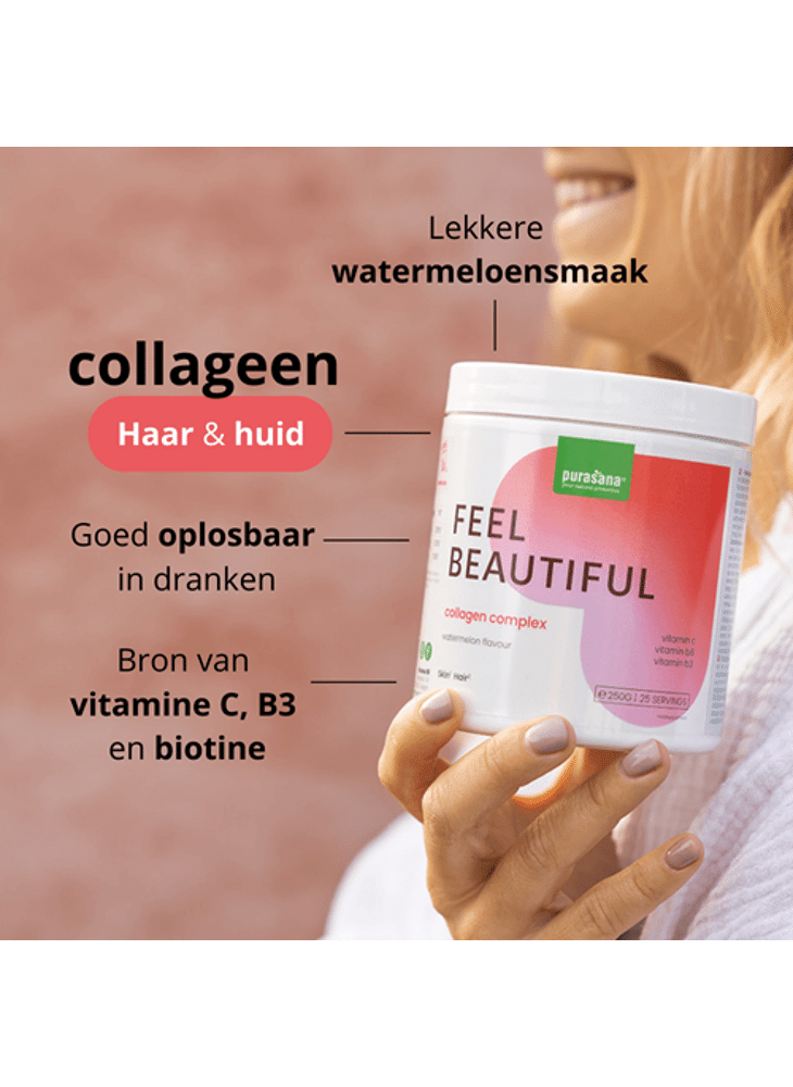 Collageen is een eiwit dat deel uitmaakt van je huid en haar. Je lichaam maakt zelf collageen aan door aminozuren uit voeding te combineren. Er zijn verschillende factoren die de aanmaak van lichaamseigen collageen verminderen, zoals onze leeftijd, de zon, ongezonde voeding, roken, stress en erfelijke aandoeningen. Het kan dan nuttig zijn om collageenpoeder in te nemen om het proces te vertragen.