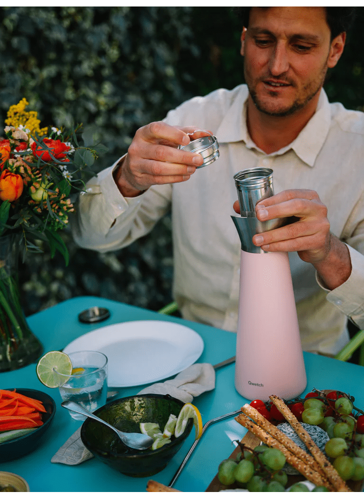 De geïsoleerde karaf voegt een vleugje elegantie toe aan uw tafel. Het functionele ingebouwde filter maakt het gemakkelijk om water te infuseren, op smaak te brengen of te zuiveren, terwijl het dubbelwandige ontwerp en het deksel uw drankje warm of koud houden. Het is de perfecte metgezel voor elke gelegenheid: familiediners of een ontspannen middag met vrienden.