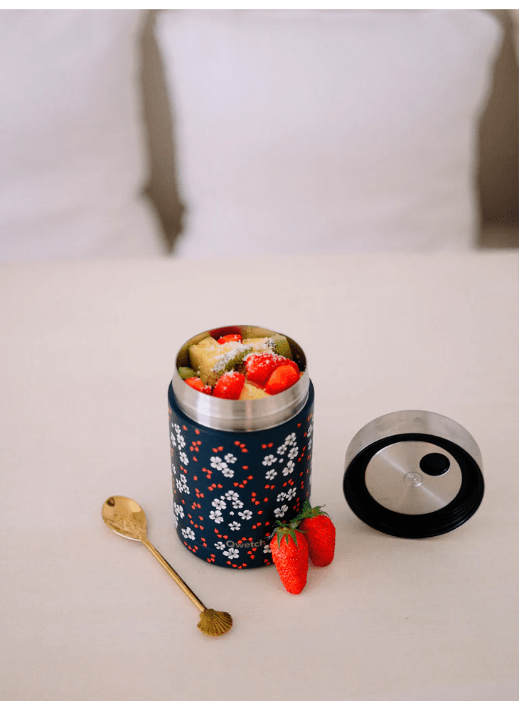 Qwetch Lunch en soep box isothermisch japanse bloesem blauw 650ml