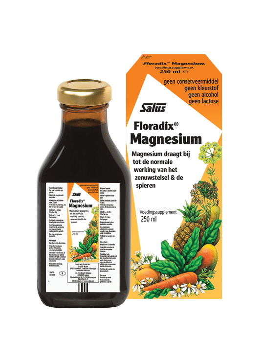 Floradix Magnesium elixer bevat magnesium in de vorm van magnesiumgluconaat en magnesiumcitraat. Dit is een goed opneembare vorm. Eén maatbekertje van 20 ml voorziet je lichaam van ongeveer 67 procent van de dagelijkse behoefte. Verder is aan dit elixer een uitgebreid scala aan ondersteunde plantextracten toegevoegd, waaronder kamille, venkel, sinaasappelschil, wortel en spinazie. Alle ingrediënten zijn opgelost in een fruitige mix van het sap van abrikozen, mango, ananas en peren. Daardoor heeft Floradix Magnesium een aangename smaak.