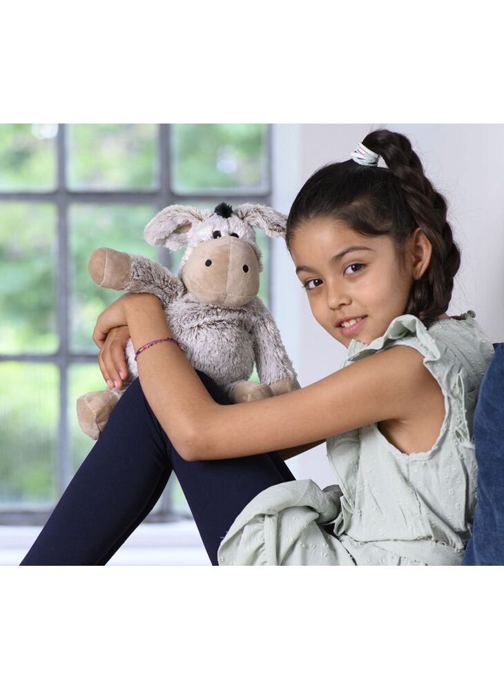 Dankzij zijn lavendelgeur en aangename warmte zal hij een absolute favoriet zijn. Onze ezel, met zijn heerlijk zachte vacht, is ongeveer 37 cm hoog en weegt ongeveer 780 gram. Hij is een trouwe speelkameraad die graag knuffelt en luistert. 's Avonds helpt hij je snel in slaap te vallen en fijne dromen te hebben.