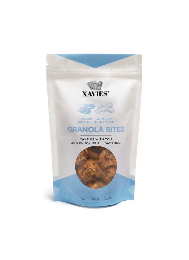 'Elke keer ik een koekje wil nemen, staan mijn kinderen te popelen om er ook eentje te nemen.' Herkenbaar? Snack vanaf nu lekker én gezond met deze heerlijke koekjes met tropische smaken! XAVIES' Granola Bites met Pecan en Gember is de ideale snack voor onderweg. De subtiele gembersmaak geeft je een exotisch gevoel. Deze krokante granolakoekjes met volle granen, pecannoten en gember passen perfect in het dagelijkse voedingspatroon!