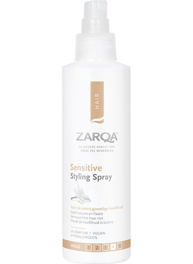 Een coupe perfect in model, de hele dag lang, dat zou nou toch eens leuk zijn! ZARQA Sensitive Styling Spray geeft volume en fixatie aan het haar. Het haar valt natuurlijk en soepel in model, zonder dat het zwaar wordt. Deze haarspray geeft glans en zorgt voor sterker aanvoelend haar. Bevat actieve ingrediënten die de talgproductie reguleren. Deze haarspray bevat geen parfum of alcohol en is geschikt voor de meest gevoelige hoofdhuid en ieder haartype. Je moet dus niet langer verder zoeken, want je hebt hierbij de perfecte haarspray gevonden!