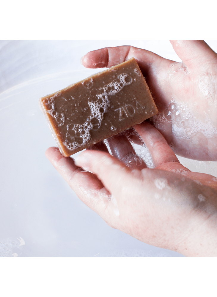 Dankzij het Rosa Canina-poeder krijgt de zeep een licht scrubbend effect. Ook mooi meegenomen: het vermindert de zichtbaarheid van fijne lijntjes en littekens!